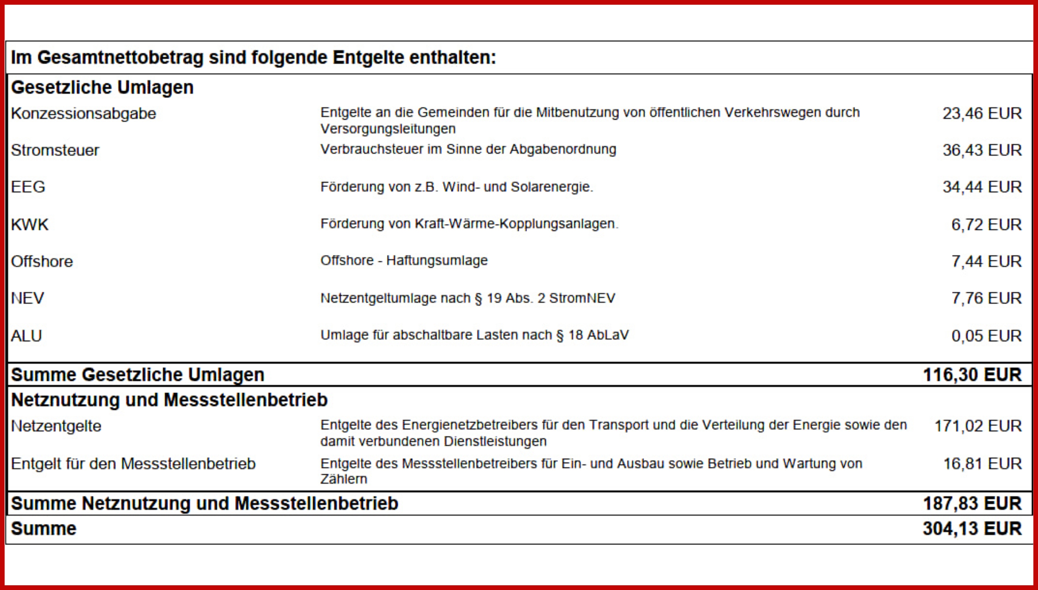 Für ein leichteres Verständnis der Rechnung haben wir für Sie die wichtigsten Bestandteile einmal erklärt.